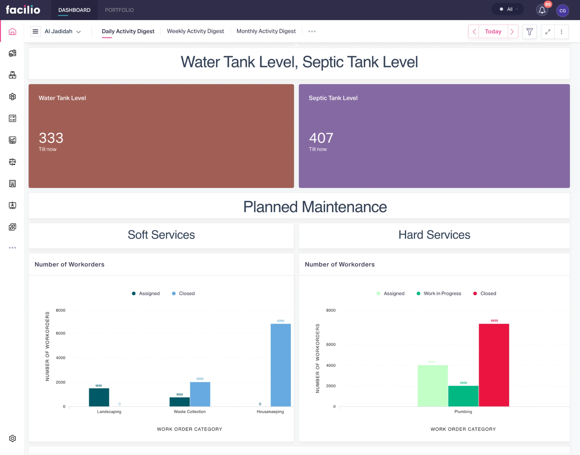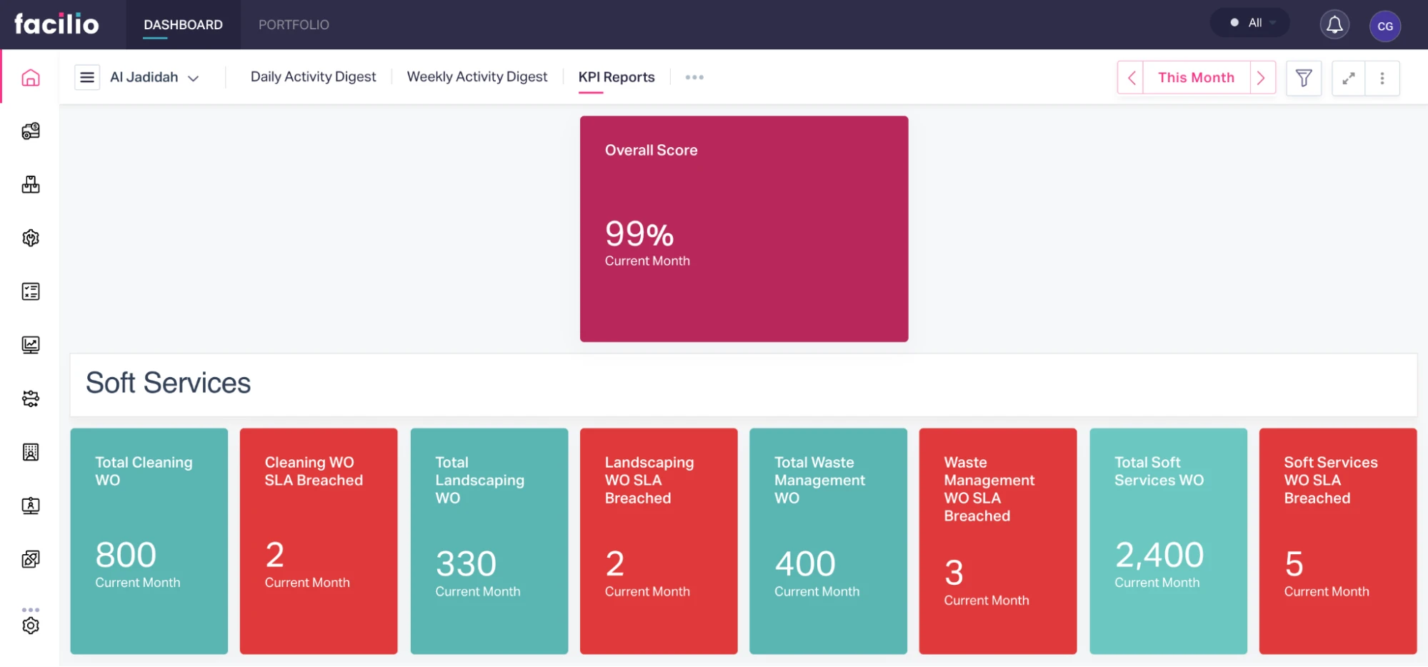 CIT relied on Facilio's analytical dashboards to monitor regular activities, including PPM, reactive maintenance, pending work orders, and overall statuses.CIT can assess performance against SLAs, identify bottlenecks or areas for improvement, and make data-driven decisions to optimize service delivery. The ability to monitor KPIs enabled CIT to track progress, identify trends, and continuously improve their FM operations