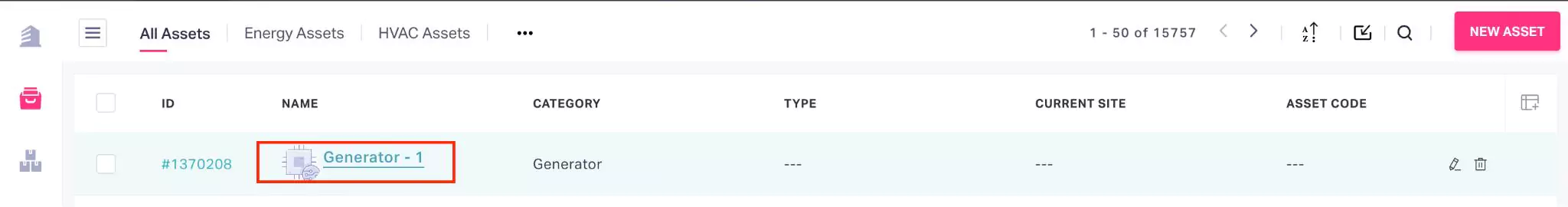 Navigate to the asset module and click the asset name for which the operating hours must be assigned.