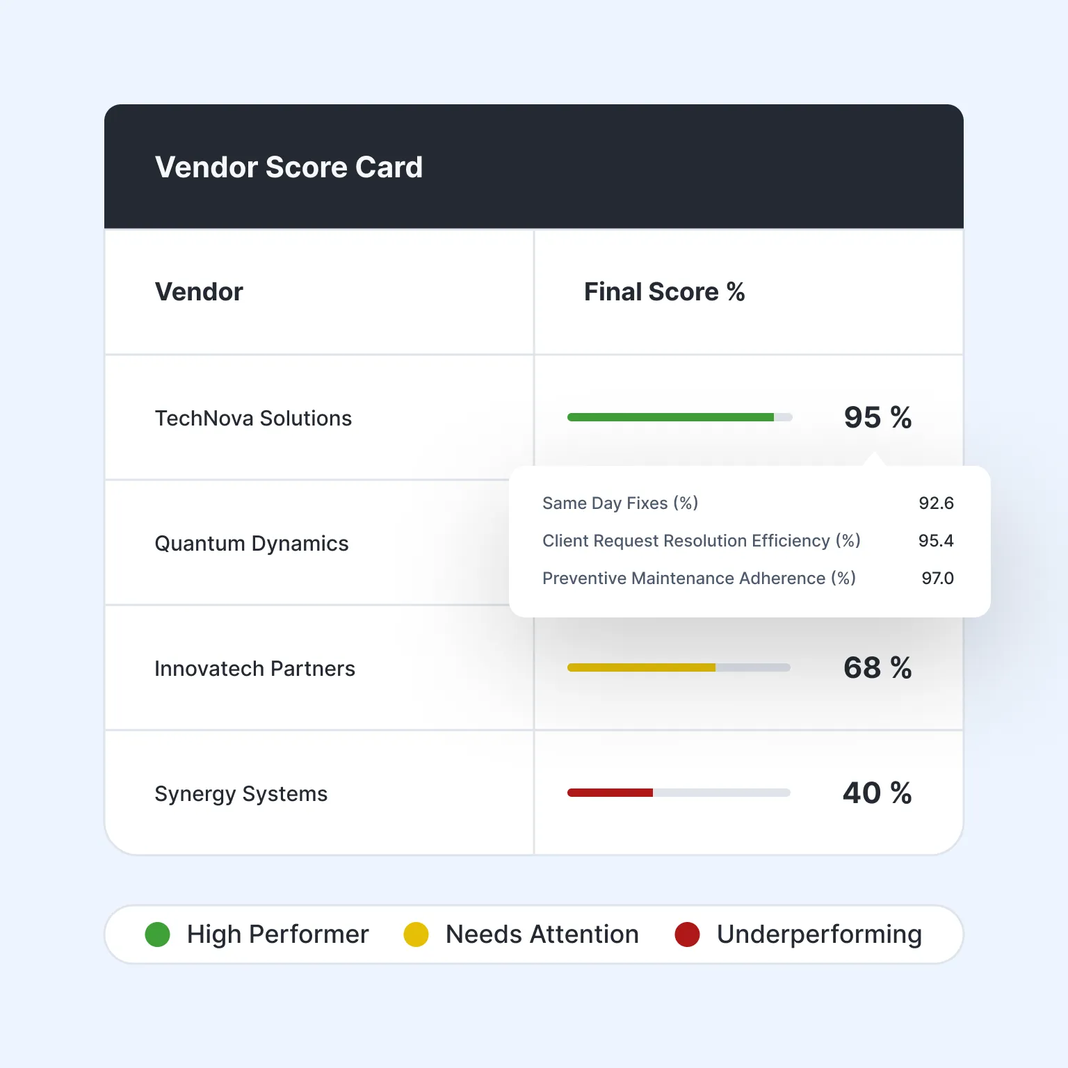 Enforce SLAs, track renewals, and hold vendors accountable portfolio-wide.