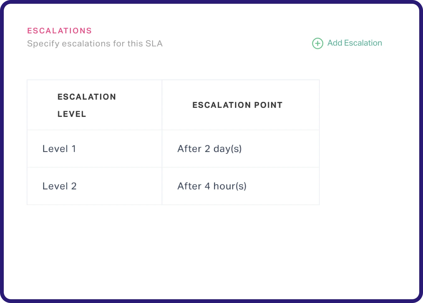 Flexibly re-assign SLA at chosen levels, view granular reports on compliance at every step, and enhance your operational processes with customizable escalation.